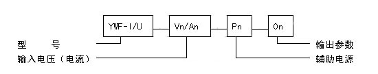 An 输入电流 | A1 0~1A | A2 0~5A | A3 0~10A | A4 0~30A | A5 0~50A | 注: A4、A5、 A6、A7、 A8 仅适合于YWF类结构的产品。 | |||||||||||